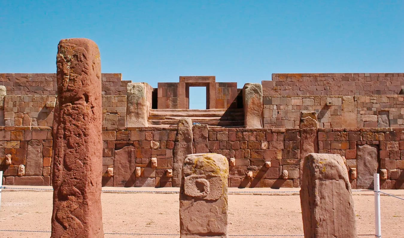 Y nuevamente vía terrestre continuamos el viaje con dirección a Desaguadero (Perú-Bolivia). Llegada y asistencia durante los trámites migratorios. Traslado a Tiwanaku. Visita al Museo Lítico, templos importantes como la Pirámide de Akapana, el Templo Semi-subterráneo, el Templo de Kalasasaya la Puerta del Sol, el monolito de Ponce y Puma Punku.